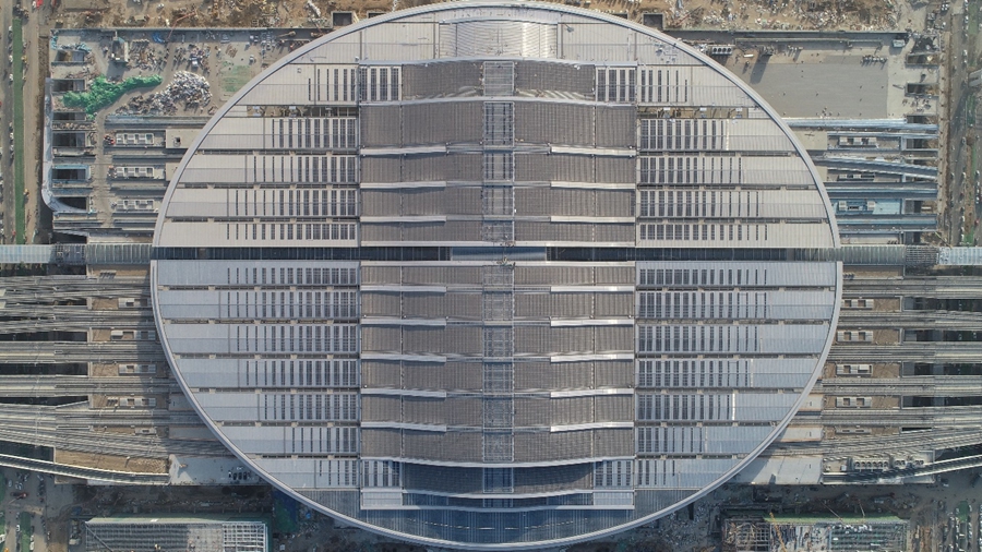 雄安站站房屋面分布式光伏发电项目。中国雄安官网发