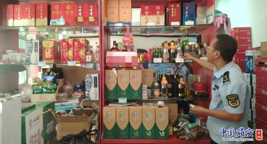 雄县市场监督管理局执法人员前往超市检查商品情况。雄县县委宣传部供图
