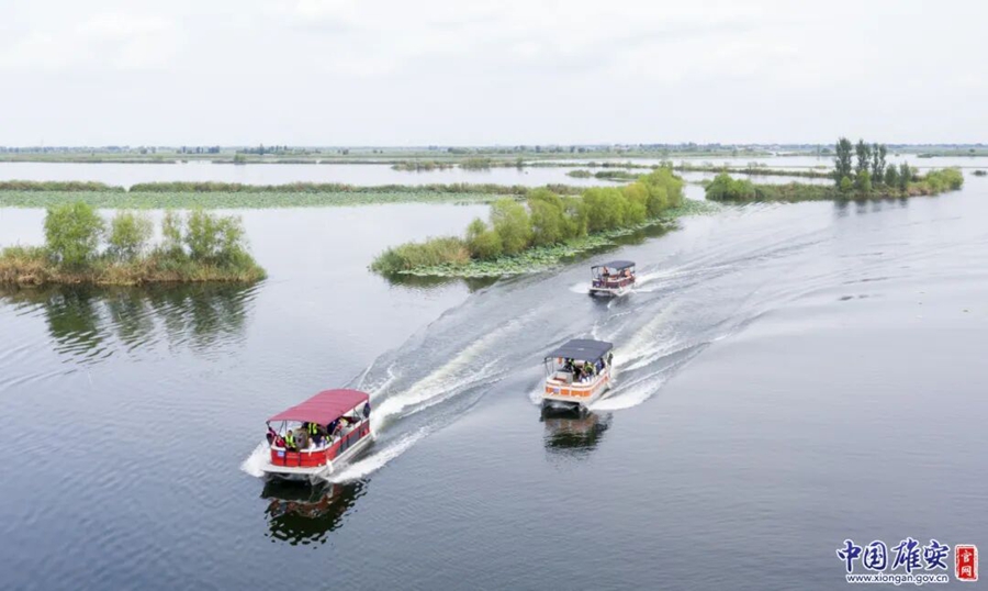 游客在白洋淀乘船游览。中国雄安官网李鑫 摄