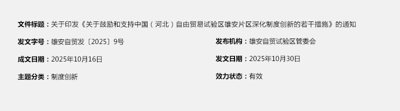 关于鼓励和支持中国(河北)自由贸易试验区雄安片区深化制度创新的若干措施