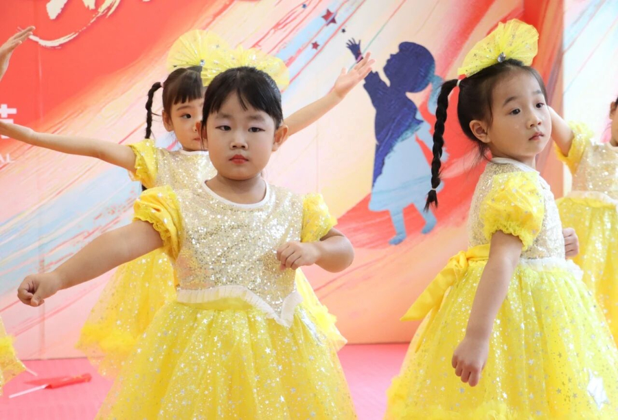 大班舞蹈社团的孩子们以舞蹈《国旗上的那颗星》表达对国旗的崇高敬意。她们身着舞裙,宛若一群灵动的小精灵,在舞台上翩翩起舞。中二班幼儿倾情演绎情景剧《王二小》,再现小英雄不畏牺牲、引敌深入的感人故事。中一班的孩子带来的《我们的家国梦》,以童言童语诉说对祖国的热爱,用灵动表演展现新时代儿童的远大志向,传递出“少年强则国强”的昂扬力量。